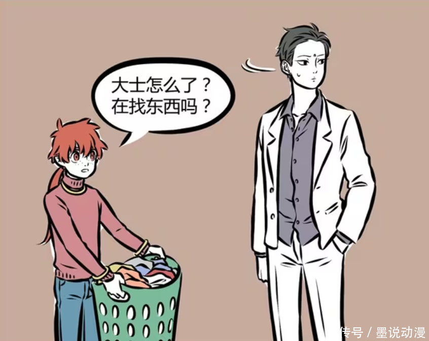 红孩儿拿着一堆一稔,准备放进洗衣机去洗。这时辰红孩儿发现不雅音似乎在找什么东西?那是扒耳抓腮,似乎很烦燥。那么不雅音是在找什么东西?或者说什么东西丢了?