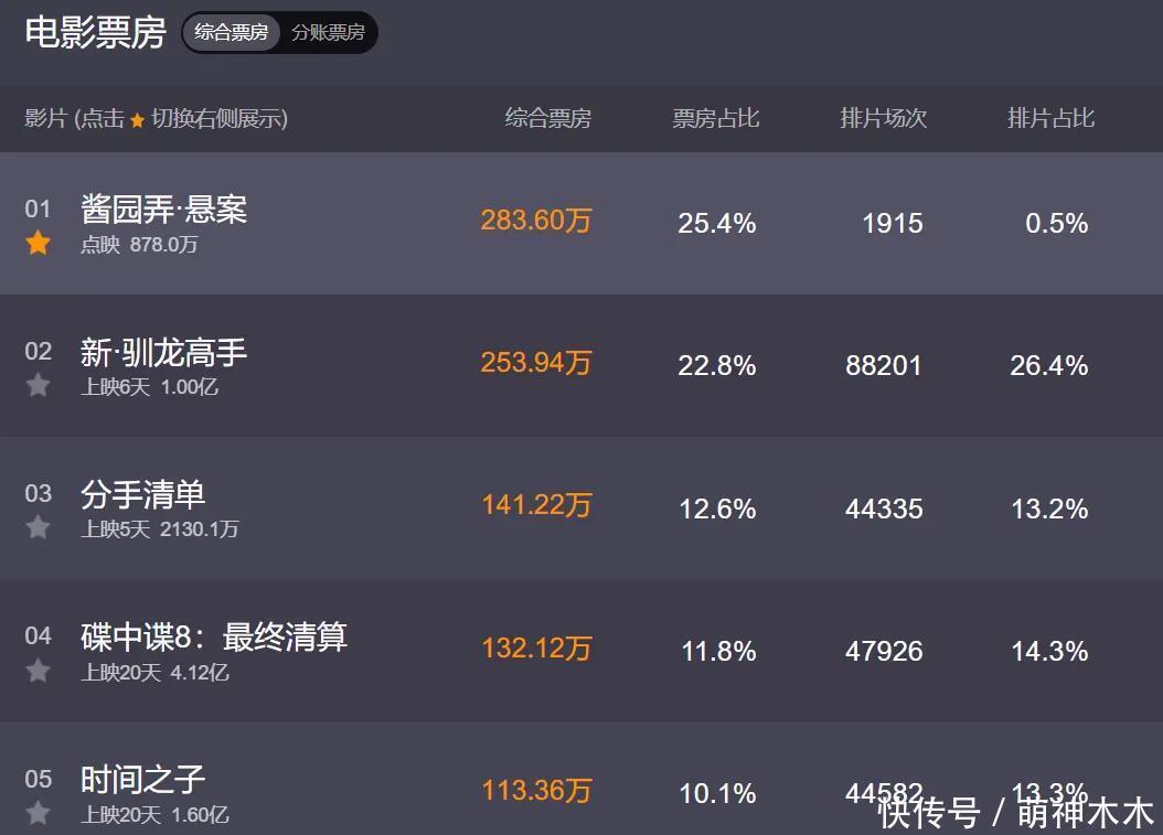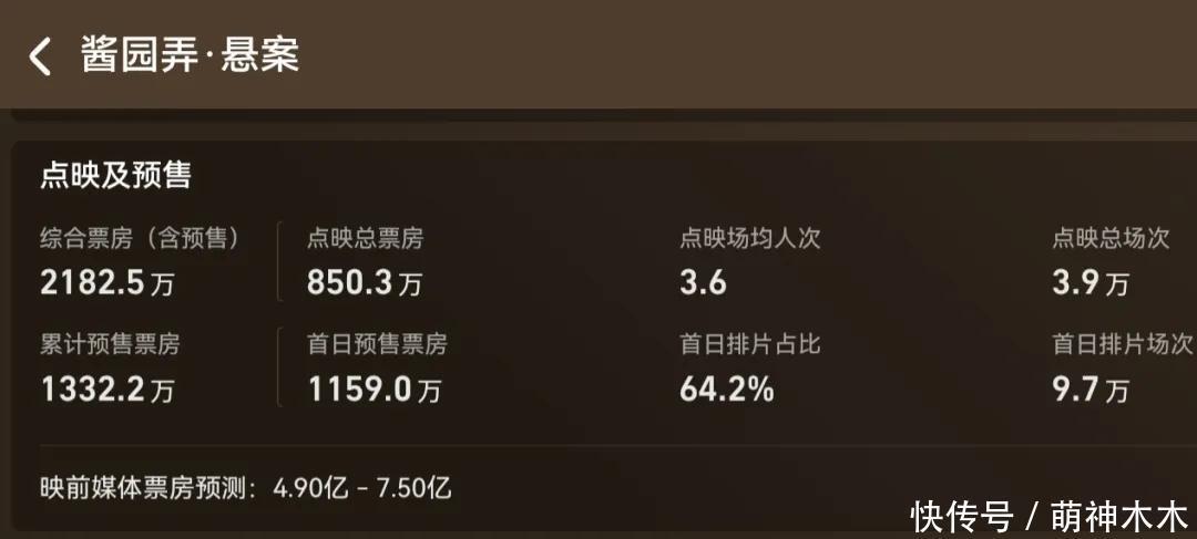 《酱园弄》开启大领域点映了!点映第一天就登顶日票房排名榜,以0.5%排片力压26.4%排片的《驯龙妙手》真东说念主版拿劣等一,点映票房迫害800万元,乍一看票房发达特地可以。
