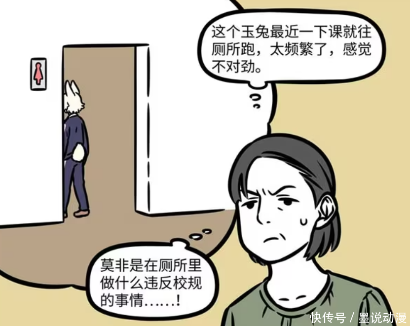 《非东说念主哉》漫画版中,小玉和哮天的高中时期的生涯也算相比道理。小玉平日下课就可爱往茅厕跑。那么为何小玉接续去茅厕?其实是为了校阅月饼基地。至于哮天接续去茅厕,仅仅带同学去杨戬的动物咖啡厅。