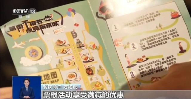 北京市东城区簋街管委会专职副主任 叶明:下一步咱们会把优惠活动每个月跟互联网平台进行蛊惑,逐步拓展从餐饮商户到旅店到网红打卡的小门店,包括一些老字号,还有一些旅游景区,把票根用起来。
