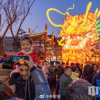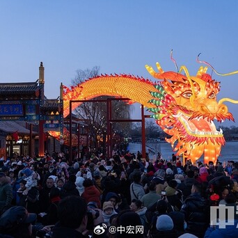 【#什刹海巨型龙灯引围不雅#】#锦绣中国年# 2月10日大年月吉,在北京什刹海畔荷花阛阓上空的一条200余米的“蛟龙出海”巨型龙灯点亮开云kaiyun体育,诱骗繁密市民旅客驻足围不雅。