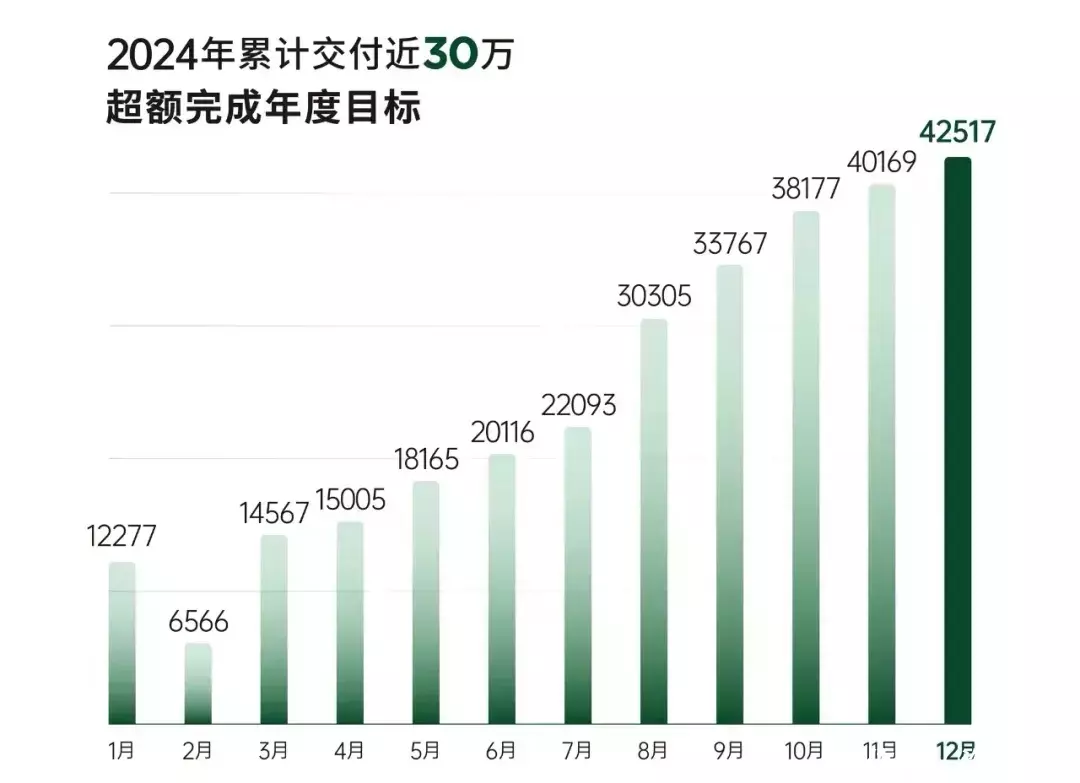 有光的场所,就有影子。陪同2025新年钟声敲响,各大汽车整车上市公司迫不足待地亮出自家得益单,终于不错长舒连气儿,为苛刻生灵的2024,封卷收官。最近因确立9周年极具话题性和传播量的零跑汽车,当然不甘颓落,以12月拜托42517辆、全年累计拜托29.37万辆的亮眼得益,再次令东说念主刮目相看。某种层面上,亦然部分造车新势力2024向好的缩影。可有光的场所,就有影子。01 内喜