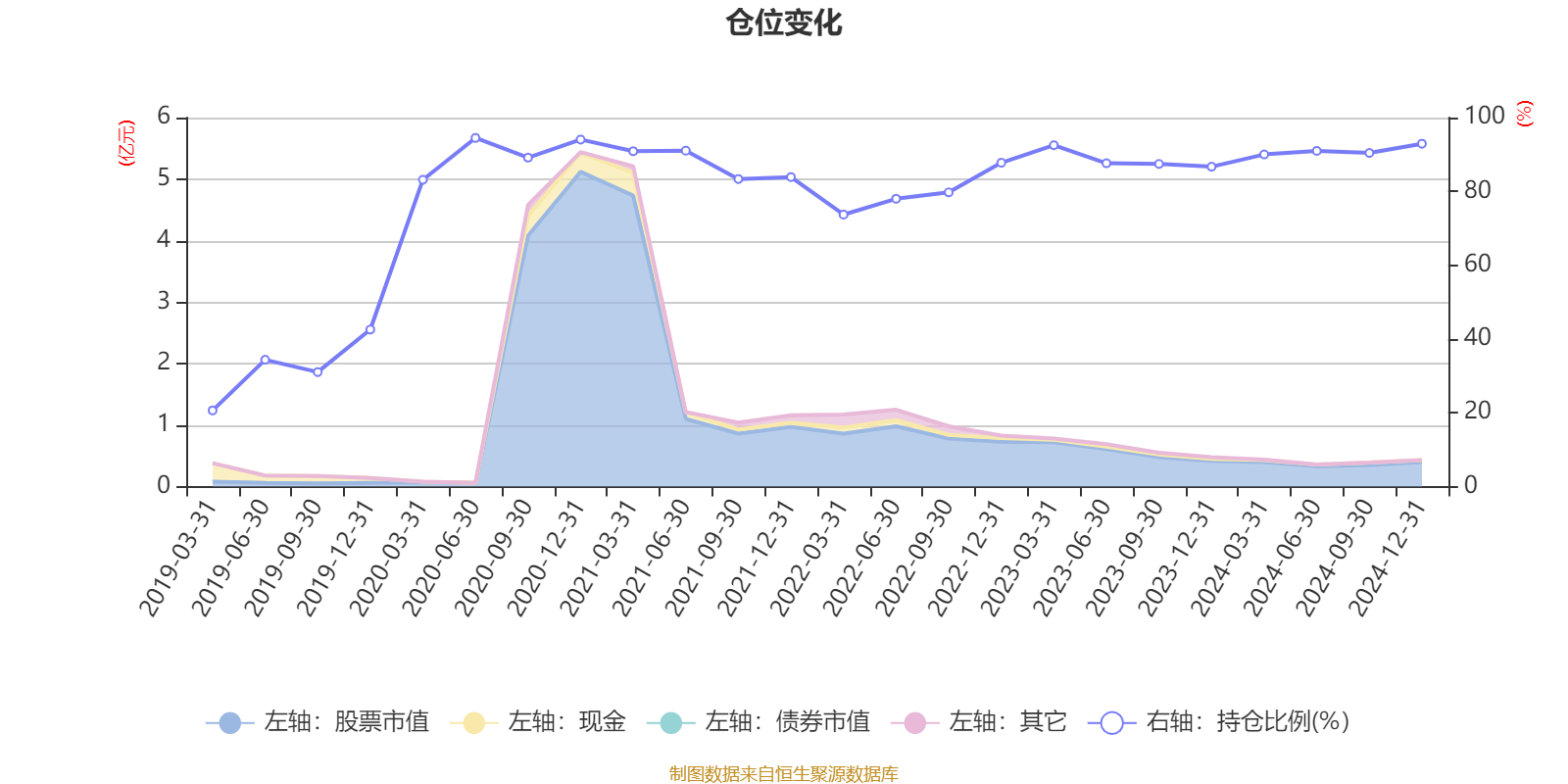 据按时评释数据统计,近三年平均股票仓位为86.49%,同类平均为79.89%。2020年上半年末基金达到94.49%的最高仓位,2019年一季度末最低,为20.63%。