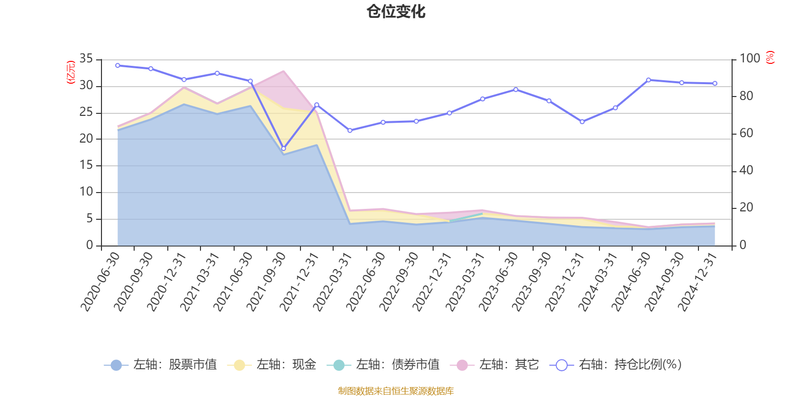 据依期讲述数据统计,近三年平均股票仓位为75.89%,同类平均为84.96%。2020年上半年末基金达到96.77%的最高仓位,2021年三季度末最低,为52.17%。