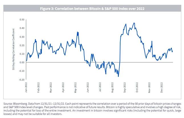 WisdomTree 发布的一则敷陈也提到了雷同不雅点,敷陈的不雅点是:尽管比特币与好意思股的有关性从十足值上来说不高,然而在近期这一有关性低于标普 500 指数与好意思国国债的讲演有关性。