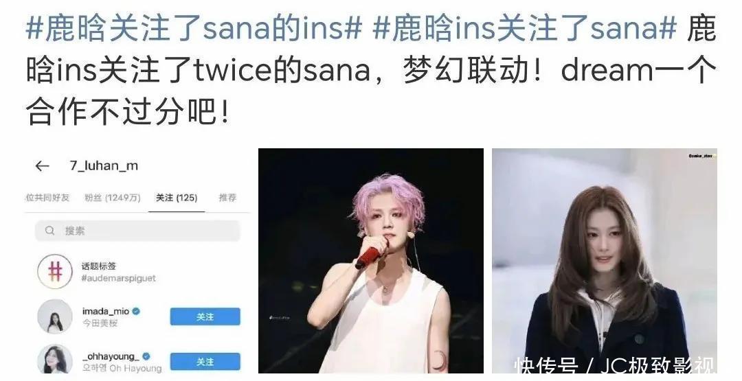鹿晗ins上存眷了韩国女爱豆Sana,和关晓彤不异的大长腿好意思女,被揣摸是鹿晗刚寻觅的新欢。