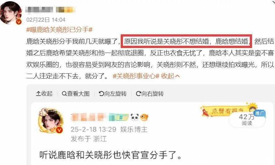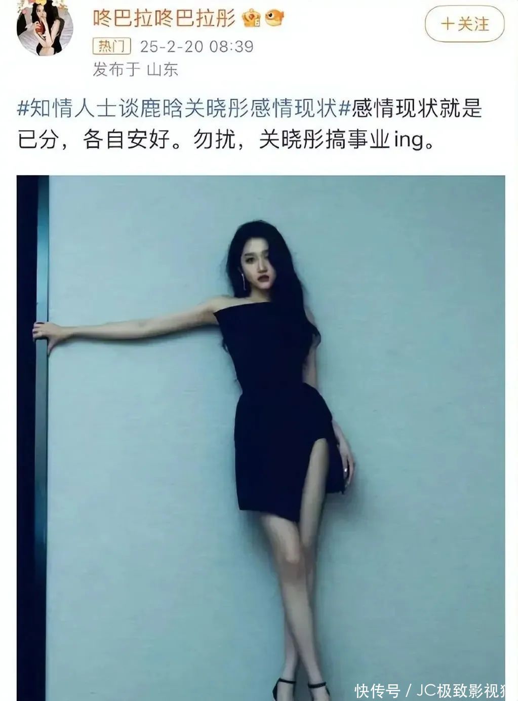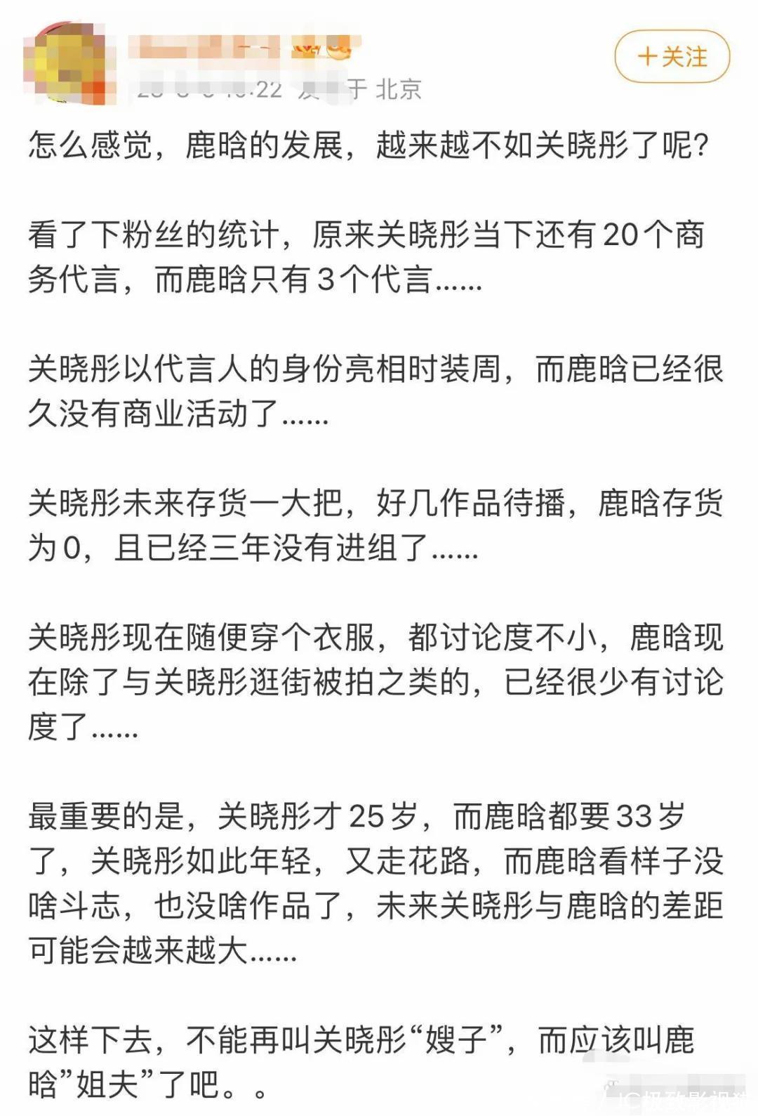 随后鹿晗删除关晓彤新剧宣传微博,被怀疑是气愤了。