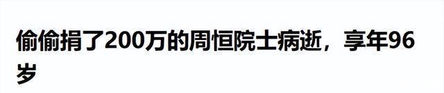 光明网2025-08-02《暗暗捐了200万的周恒院士病逝,享年96岁》