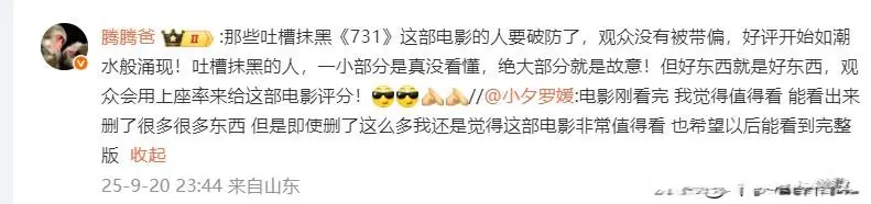 就像网友说的:“那些吐槽抹黑《731》的东说念主这下要傻眼了,不雅众的眼睛是雪亮的,好评如潮流般涌来!吐槽的东说念主,一小撮是真没看懂,大部分那即是有益找茬!但好东西即是好东西,不雅众用内容步履 —— 上座率,给这部电影打出了高分!”