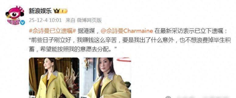 佘诗曼一九七五年降生在香港,早年当上香港姑娘季军,之后靠拍古装剧一步步走红,她在《宫心情》里演的安月仙超过狠,可实践中她作念事挺有层次,旧年新剧《新闻女王2》刚播完,当今又提及遗嘱的事,看得出她对以后的日子念念得挺显着。