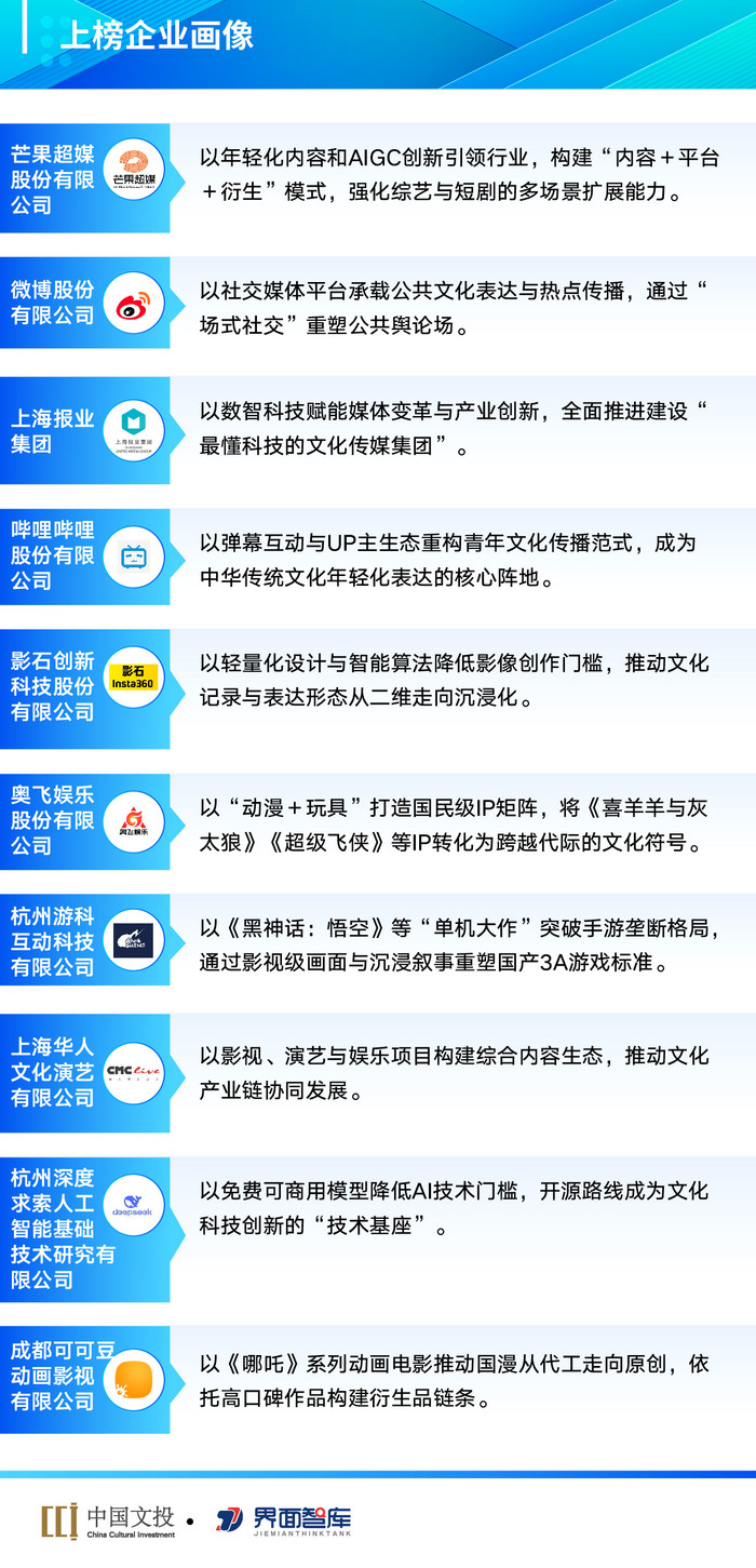 中国文化产业正迈入以“数据+智能”为中枢运转的新发展阶段,家具形态、产业结构和亏蚀场景正在资格深度重构。在此过程中,一批兼具时代创新力、文化抒发力、场景交融力与市集引颈力的“新式文化企业”加速显现,成为推动文化产业迈向新质坐蓐力的要紧力量。