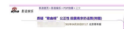 部分参考贵寓来源:新民晚报|歌手田震恢复国籍神话 北京后生报|质疑歌曲榜公谈性 田震南京扔发话器