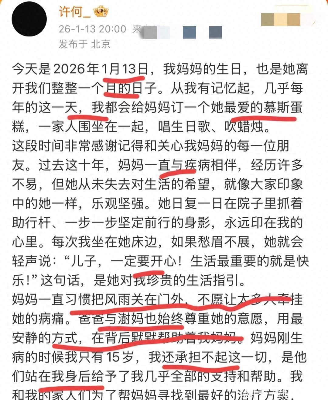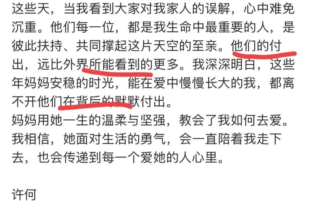 何晴离世一个月了,何晴和许亚军的女儿许何发文怀念母亲开云kaiyun.com,当初在何晴的悲痛典礼上,网友看到许何阿谁孤独的背影,齐示意喜爱这个孩子!如今在母亲离世一个月之际,许何发文怀念母亲,从许何的发文中,也不错看出来,孩子对母亲的念念念!况且他也素雅解释了,姆妈何晴从生病到离世的经由!
