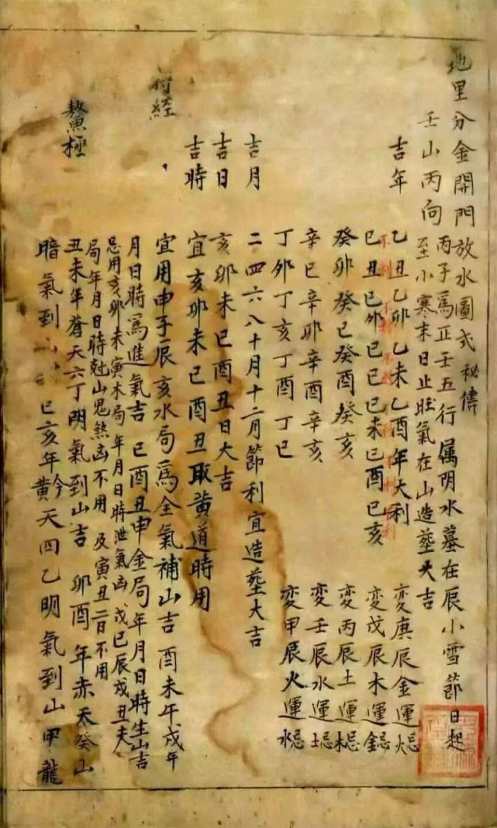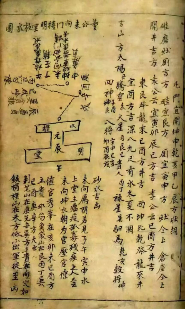 开门放水动作阳宅纳气、阴宅藏风的要津设施,是该书实操价值的中枢体现。开门布局部分,按宅型、朝向分类明确开门吉方,详备标注门楼立向准则、尺寸步履与择日重心,强调“门为阳宅气口”,吉方开门可纳旺气、凶方避忌可挡煞气,以致细化到门的大小与宅型的适配比例。明堂放水部分则深耕水流深奥,胪陈放水看法、左水倒右、右水倒左等流向章程,拆解阴世、冲禄、流破冠带等凶格的危害,同期传授“借库消水”“禄存流尽佩金鱼”等吉格用法,变成完竣的水法福祸闭环。