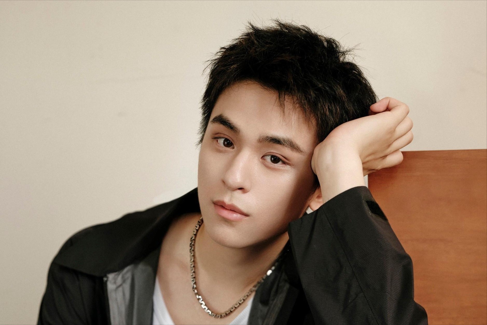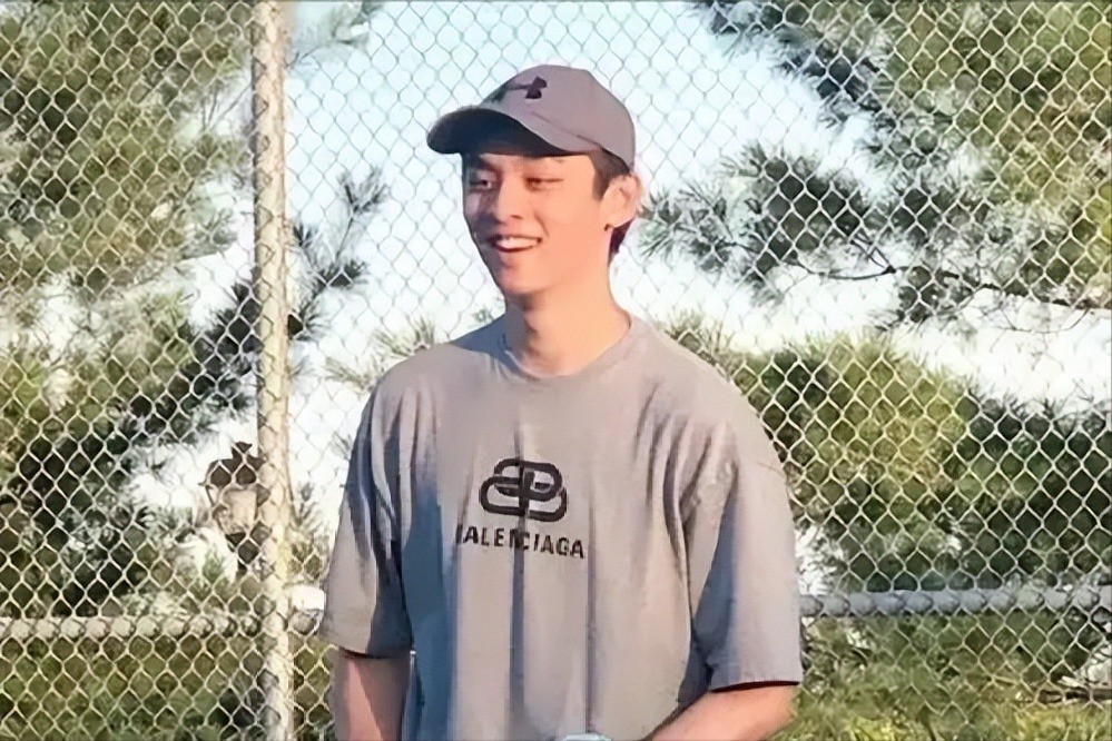 相片中的他身穿一件玄色外衣,内部搭配的是简便的白色内搭。