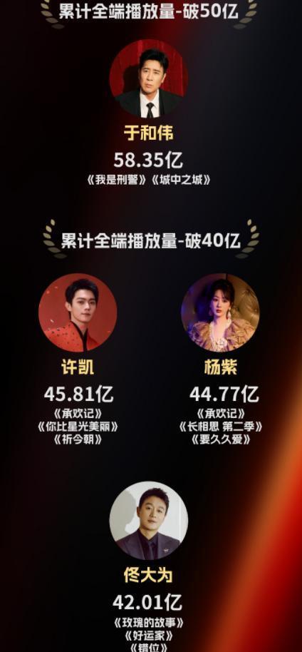除了《长相念念》第二季外,杨紫主演的《承欢记》和《要久久爱》也有可以的弘扬,也即是说,唯有是杨紫主演的电视剧,基本上齐是热播剧打底,最终杨紫凭借三部剧收货“44.77亿”播放量。