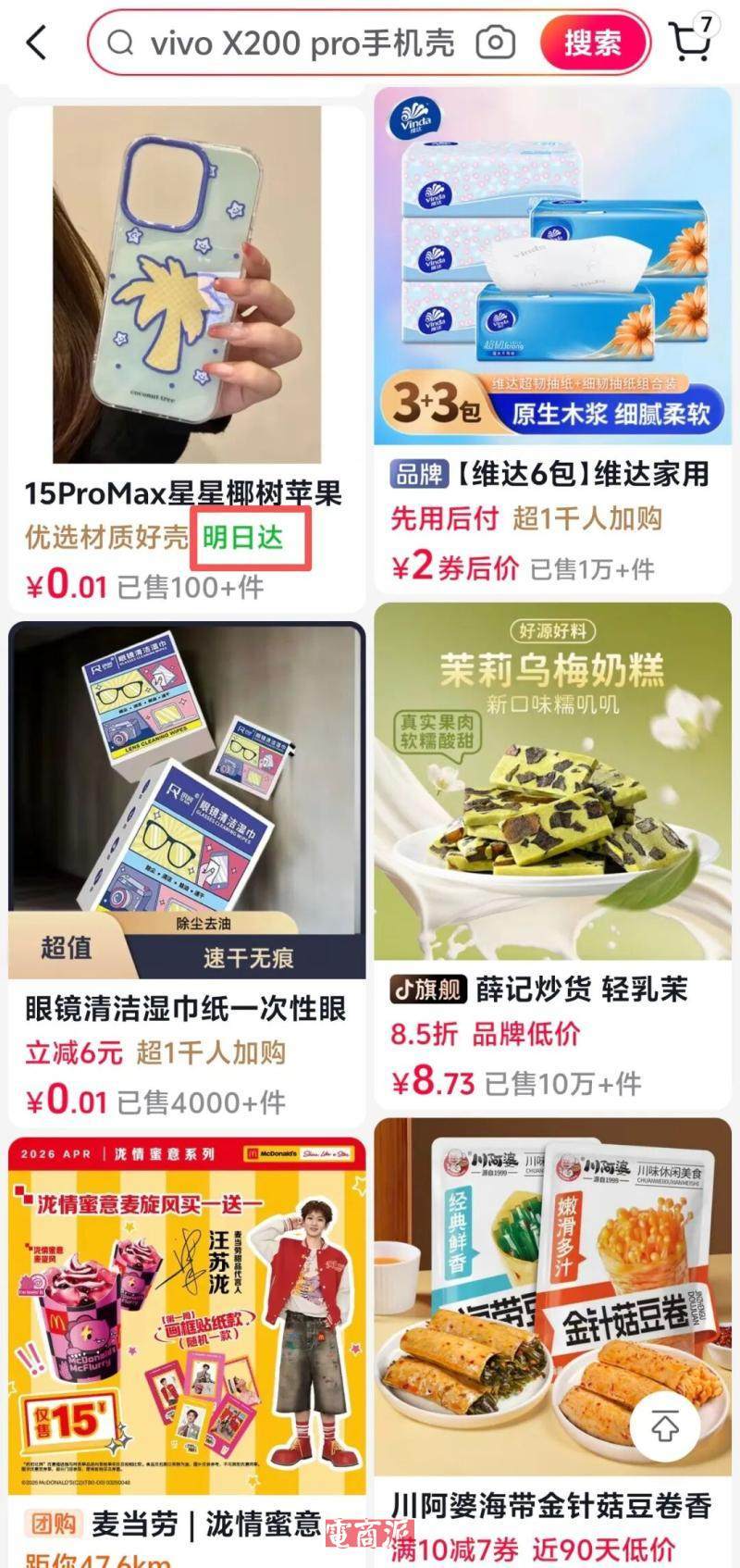 第二,标签化展示。平台不再强制条目商家开设零丁店铺,而是通过算法自动识别具备“明日投递”才能的商品,在搜索、直播、店铺页等场景为其打上“明日达”标签。这意味着,“明日达”变成了“商品标签”,更天然地融入用户的浏览和方案历程。