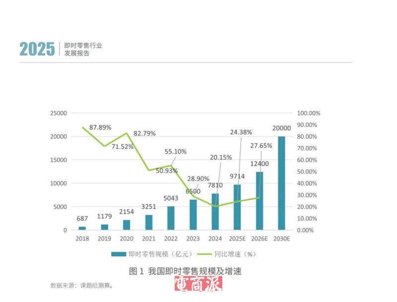 人所共知,即时零卖是连年回电商领域增长最快的赛说念之一。《即时零卖行业发展申报(2025)》知道,连年来即时零卖行业保捏高速增长,预测2030年我国即时零卖界限将高出2万亿元。