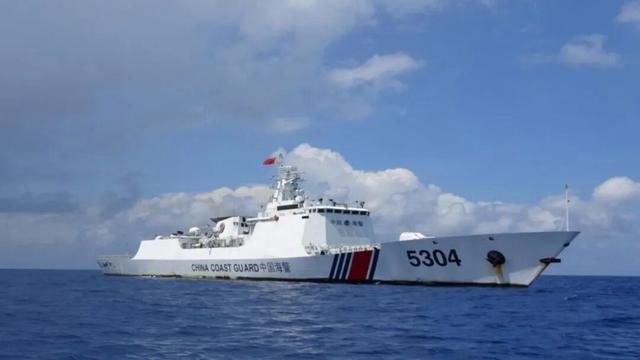 筹议词,中国海警早已布下云罗天网。菲律宾海岸警卫队“巴佳凯”号探员船在信义礁海域,被中国海警5304舰精确禁锢,紧紧实刻下距和善礁约50公里处,寸步难行。菲方的算盘再次幻灭。