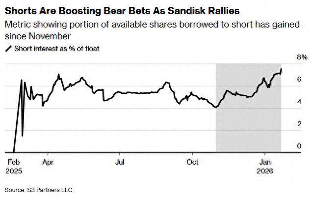 智通财经APP获悉,阐明S3 Partners LLC的数据,跟着存储芯片厂商Sandisk(SNDK.US)股价大幅高潮,该股的空头仓位在当年数月握续攀升,轧空风险已达到“顶点”水平。