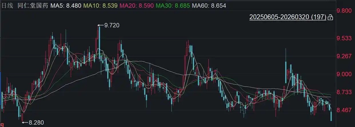 二级阛阓上,终结3月20日收盘,同仁堂国药着落1.89%报8.30港元/股,总市值约69.48亿港元,近一年来公司股价近乎“踏踏实实”。`